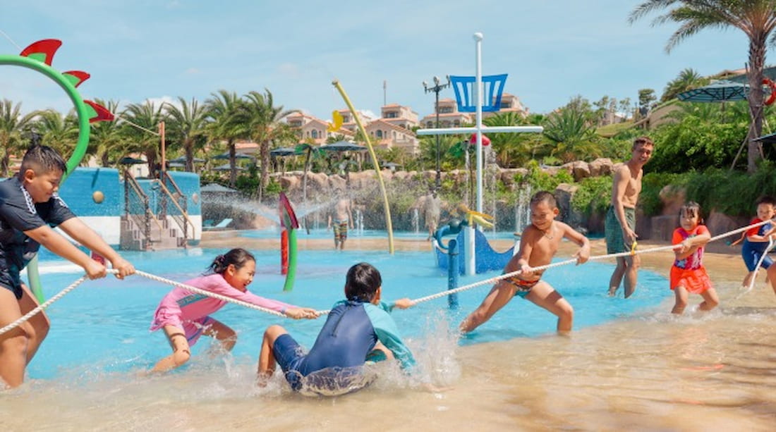 - Khu nghỉ dưỡng được thiết kế theo chủ đề Explorer Playround– “Sân chơi của người khám phá”. Du khách có thể vui chơi tại công viên nước , công viên Camp Safari và E-Zone dành cho trẻ em, khám phá nhà hát ngoài trời, nhà hàng phục vụ các món ăn dân tộc và tham quan tháp quan sát gần cung cấp Faro tầm nhìn toàn cảnh Biển Đông.